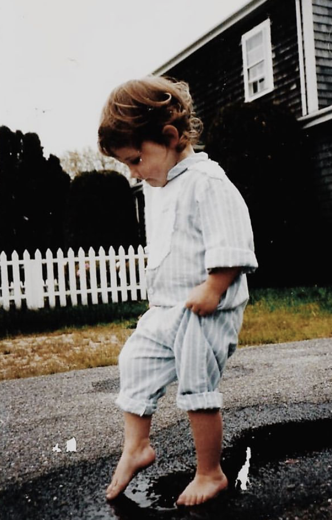 I treasure this image from my own childhood. I was outside my great-grandparents' home, which they had built in Cape Cod, a place I absolutely loved being at. I was in my own world, enjoying the act of exploring. I also love the setting and outfit, as both feel timeless. These are the images I want to create. These are the stories I want to tell.